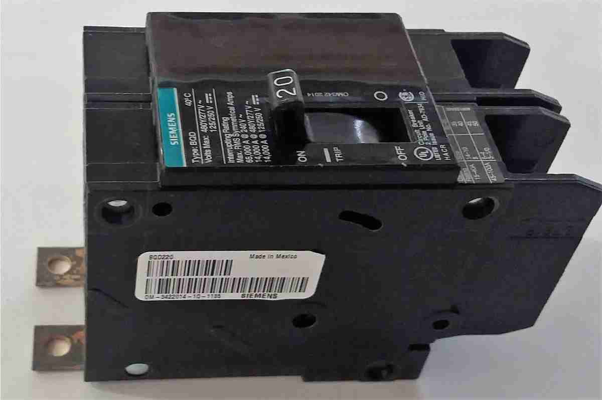 Interruptor termomagnético 2 polos, 20 amperes, 220V.