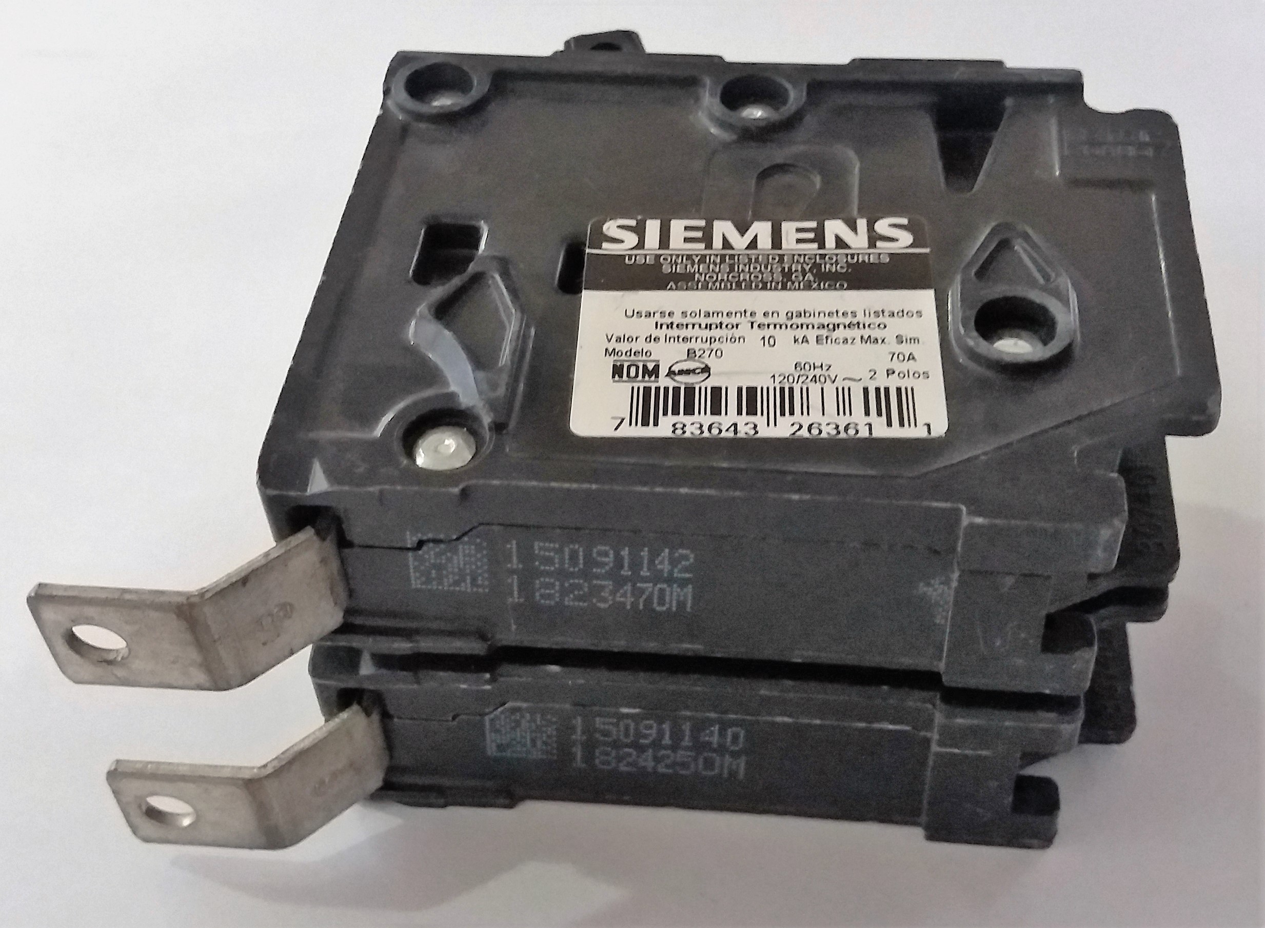 Interruptor termomagnético 2 polos 70 amperes 220V.