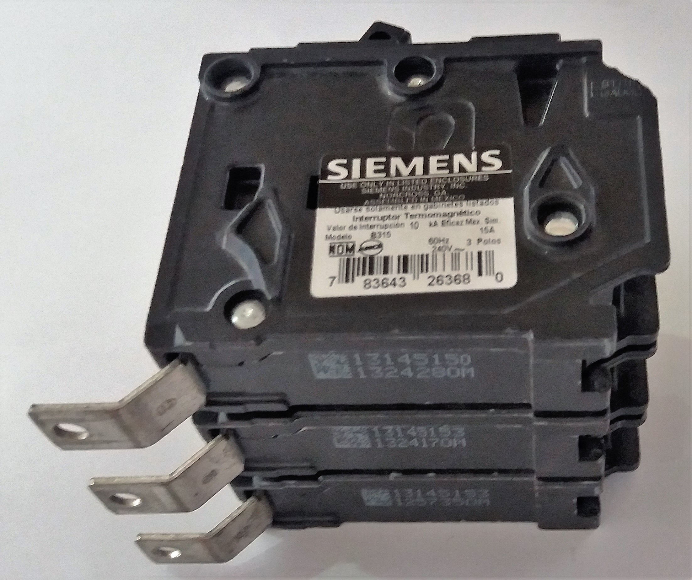 Interruptor termomagnético 3 polos, 15 amperes, 220V.