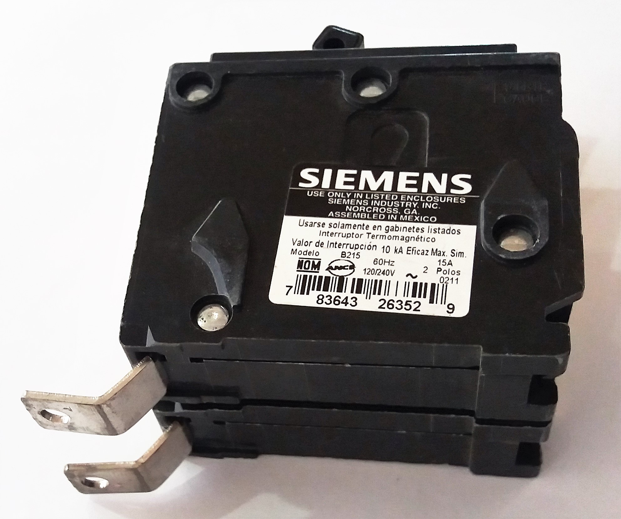 Interruptor termomagnético 1 polo, 15 amperes, 220V, tipo B ...